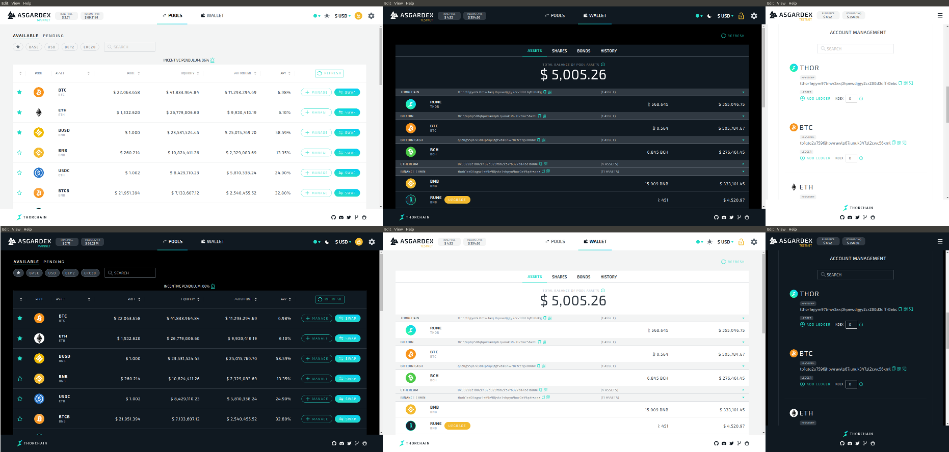 Support for THORChain’s native assets and integrations with popular cryptocurrencies.
