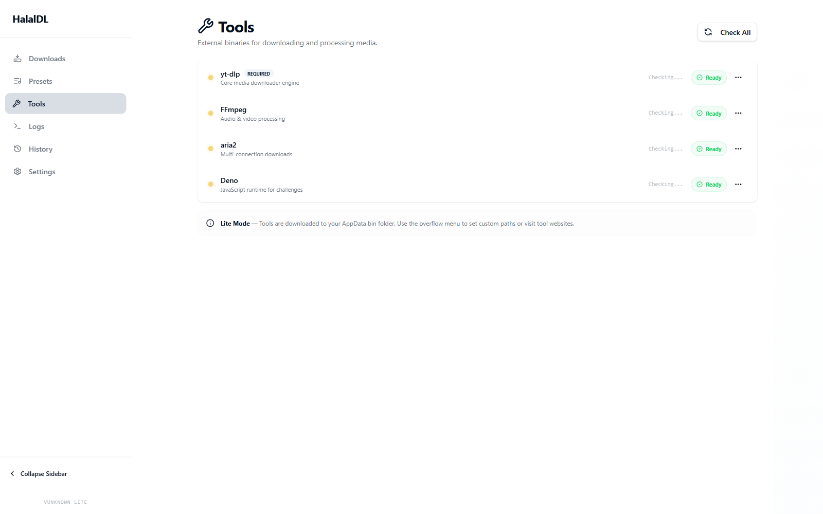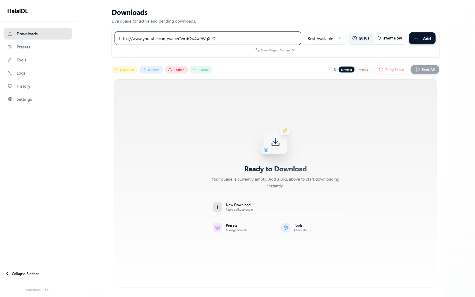 HalalDL is a desktop application designed to simplify video and audio downloads from supported platforms using yt-dlp on Windows. Built with Tauri, it offers a clean, user-friendly interface for managing downloads without the need for terminal commands.
