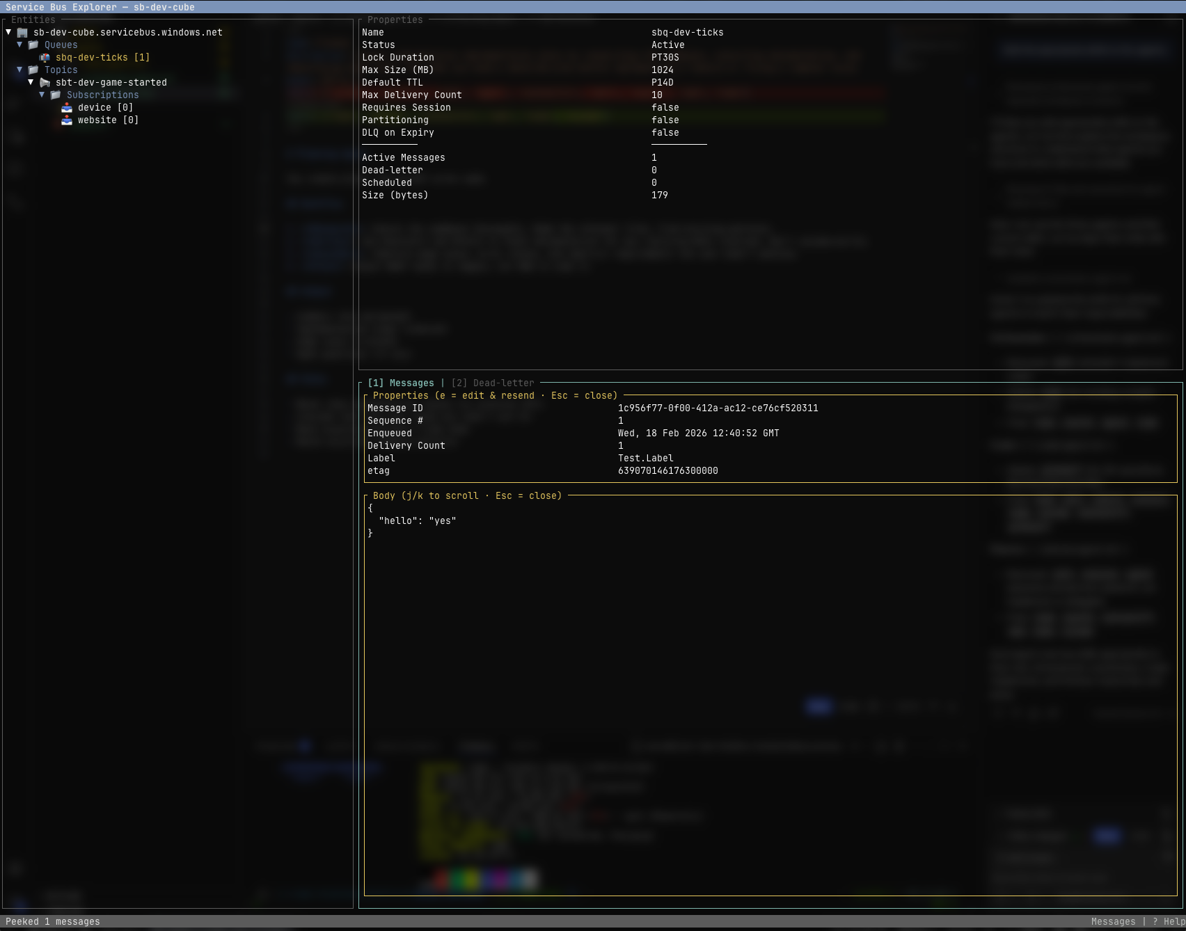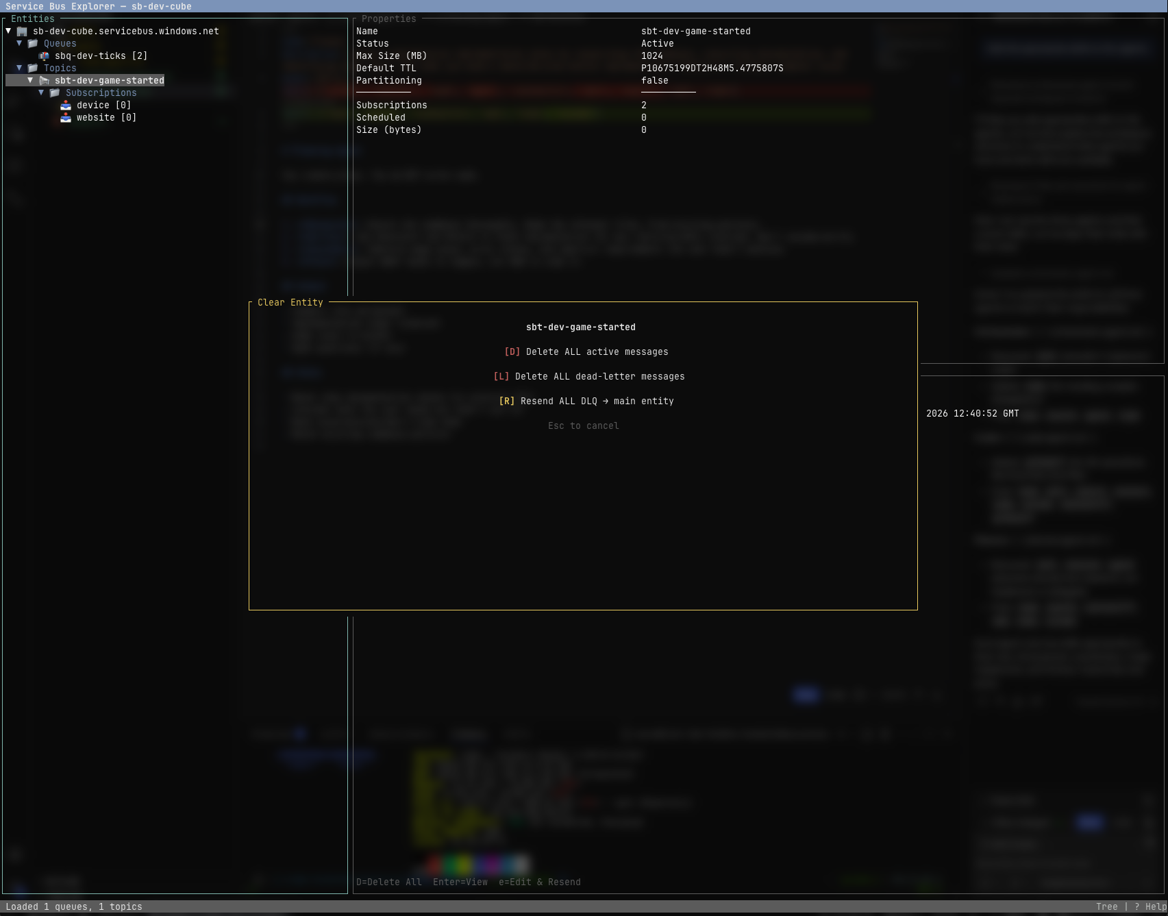 A cross-platform terminal UI for managing Azure Service Bus namespaces — queues, topics, subscriptions, and messages. Inspired by the wonderful ServiceBusExplorer application and bringing its functionality cross-platform.