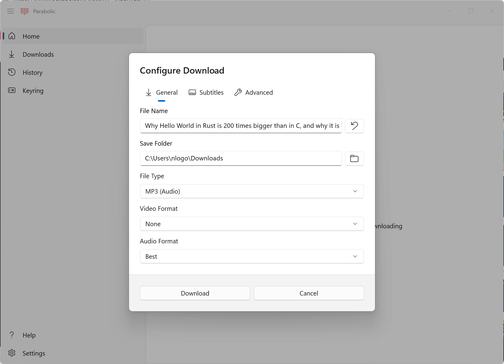 Nickvision Parabolic can be installed via winget, ensuring seamless integration across supported platforms.