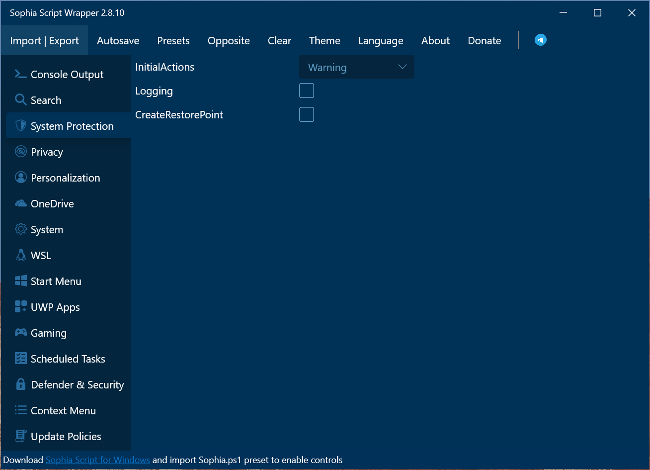 Sophia Script for Windows