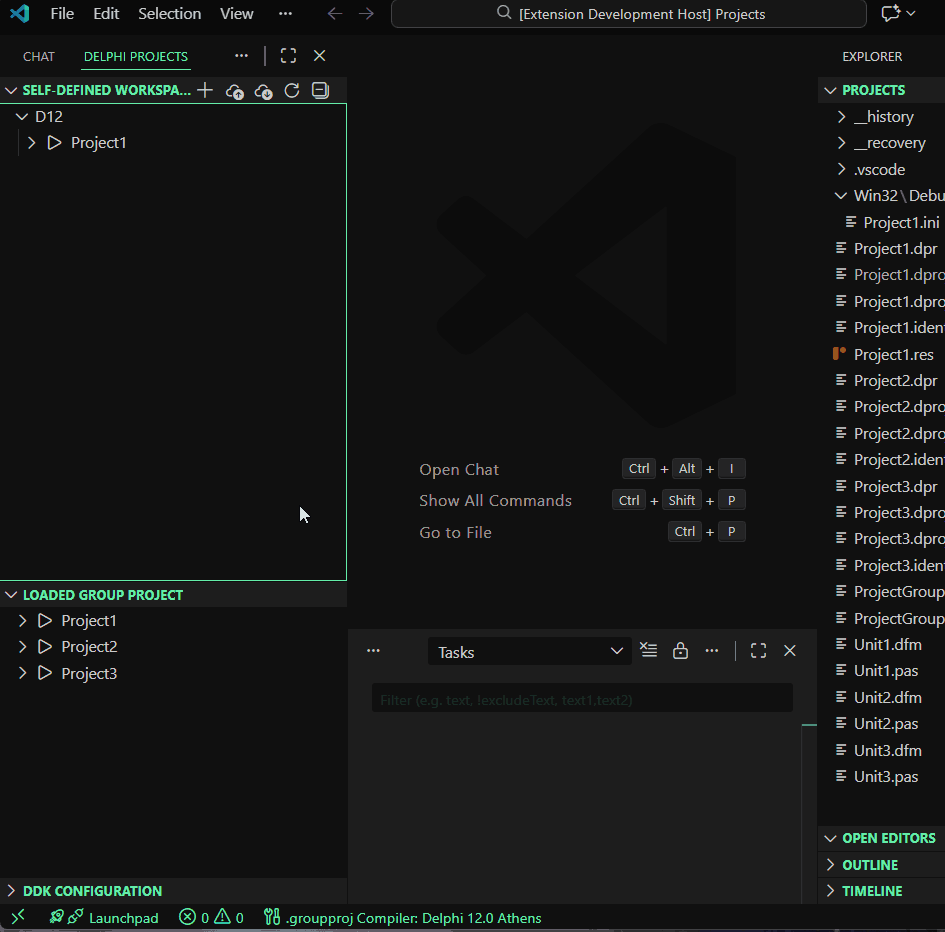 Ideal for Delphi developers seeking efficient project management and seamless integration between command-line workflows and VS Code. DDK enables streamlined development processes, consistent compiler configurations across environments, and enhanced productivity through automation and customization. Its support for multiple compilers, bulk operations, and file system integration makes it a valuable tool for managing complex Delphi projects. Additionally, the integration with AI tools via MCP server enhances the development experience by providing intelligent assistance directly within your workflow.