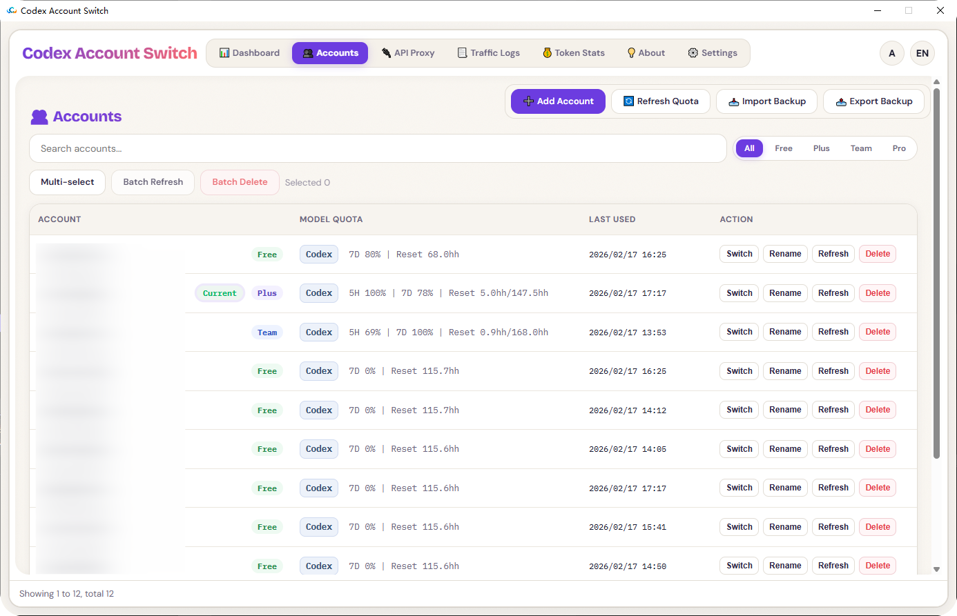 - Unified workflow for backup / switch / delete / rename accounts