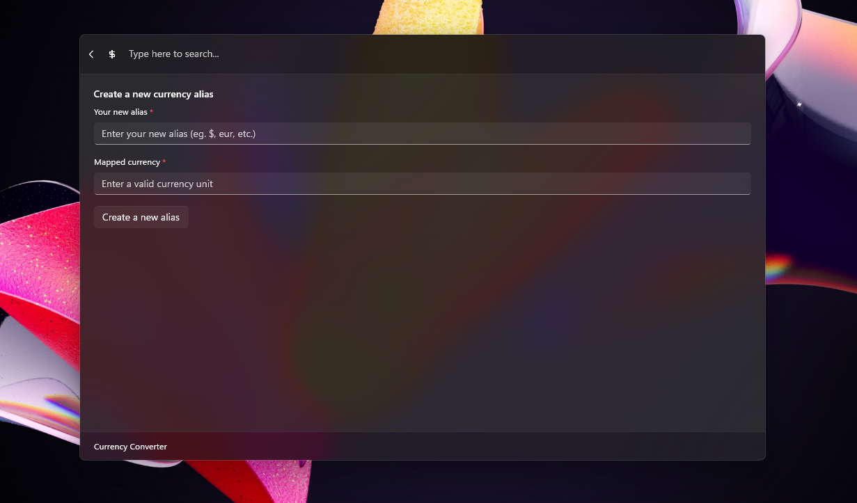 Alias Management: Create and delete custom aliases for currencies to streamline frequent conversions.