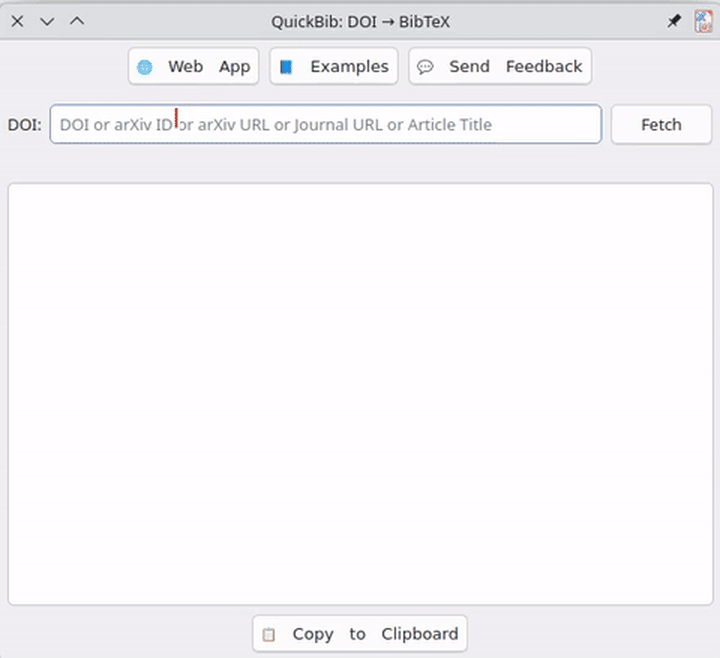 Audience & Benefit: Ideal for researchers, students, and academics who frequently need to format references in LaTeX documents. QuickBib saves time by automating the retrieval of accurate BibTeX entries, reducing manual data entry errors, and improving workflow efficiency.
