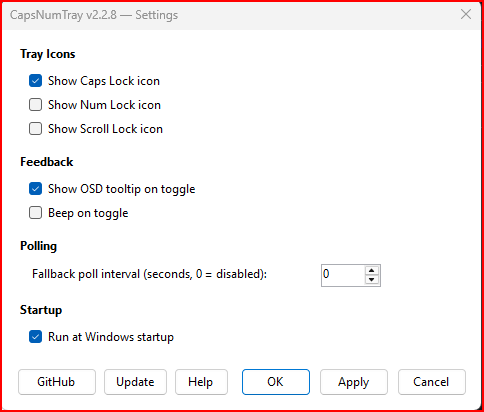 Settings are stored in CapsNumTray.ini (auto-created next to the exe):