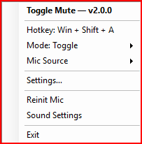 A lightweight system tray utility that lets you mute and unmute your microphone from anywhere using a hotkey or tray icon click. Works at the Windows audio level — affects all apps at once (Zoom, Discord, Teams, etc.).