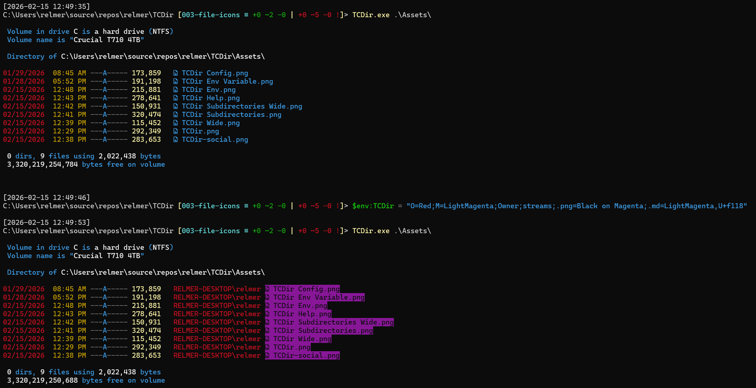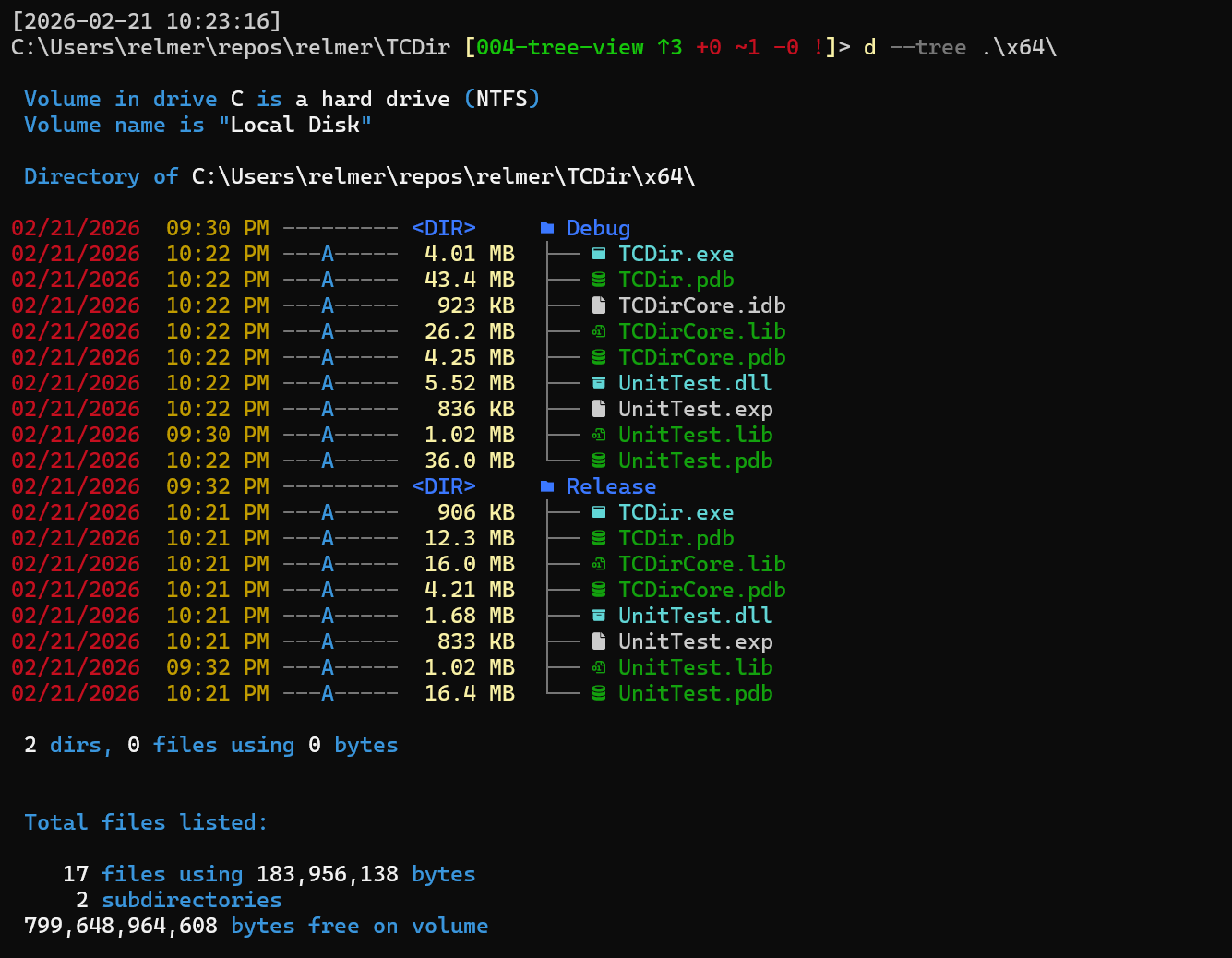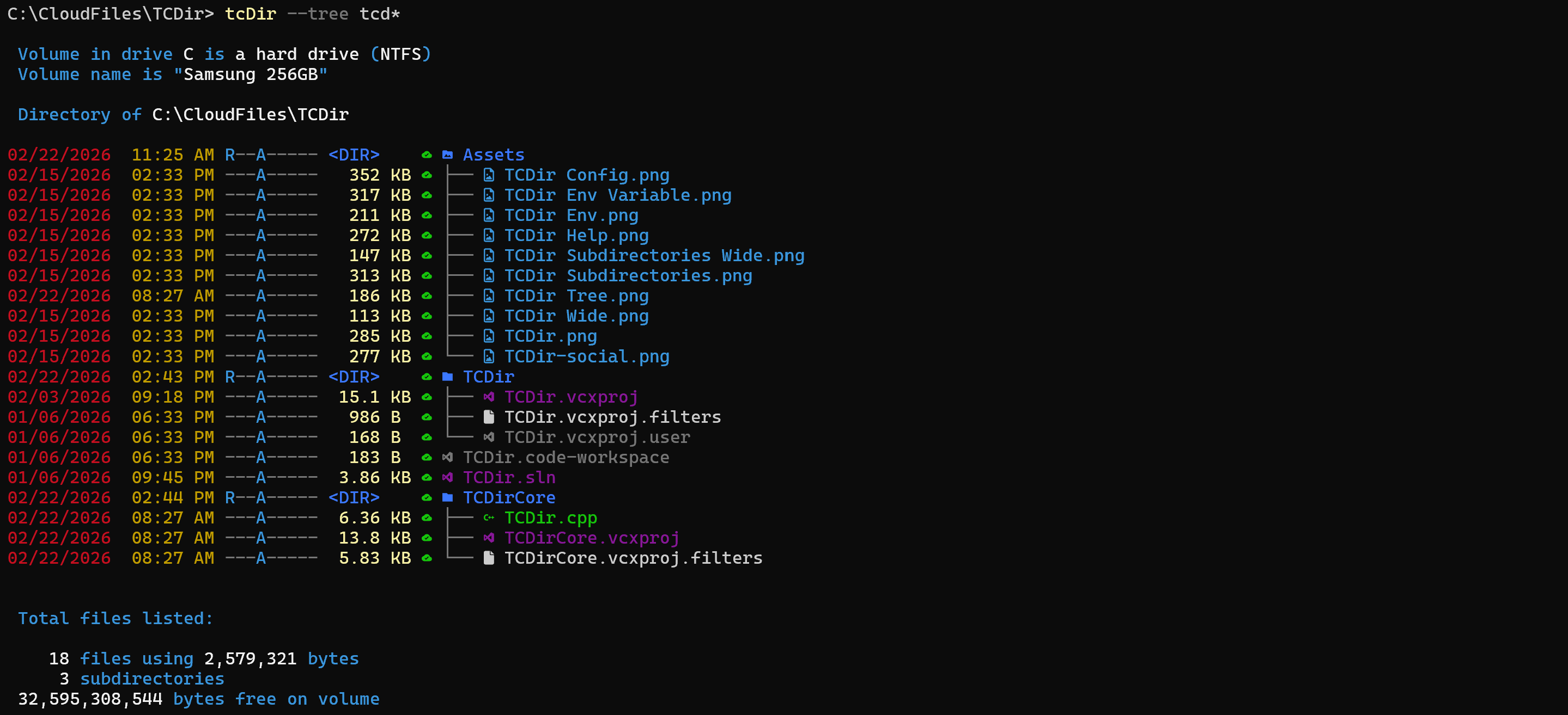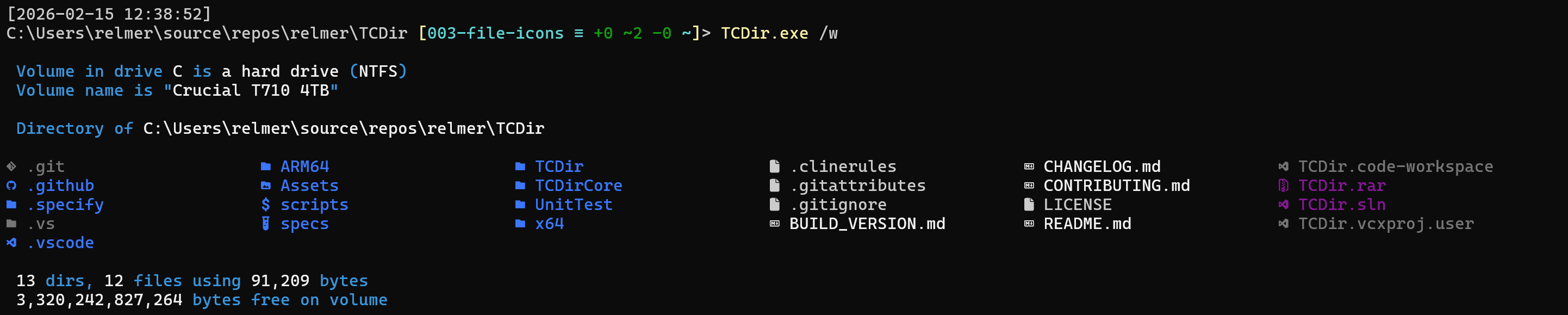 > Also available in Rust: RCDir is a parallel Rust implementation of TCDir with feature parity.
