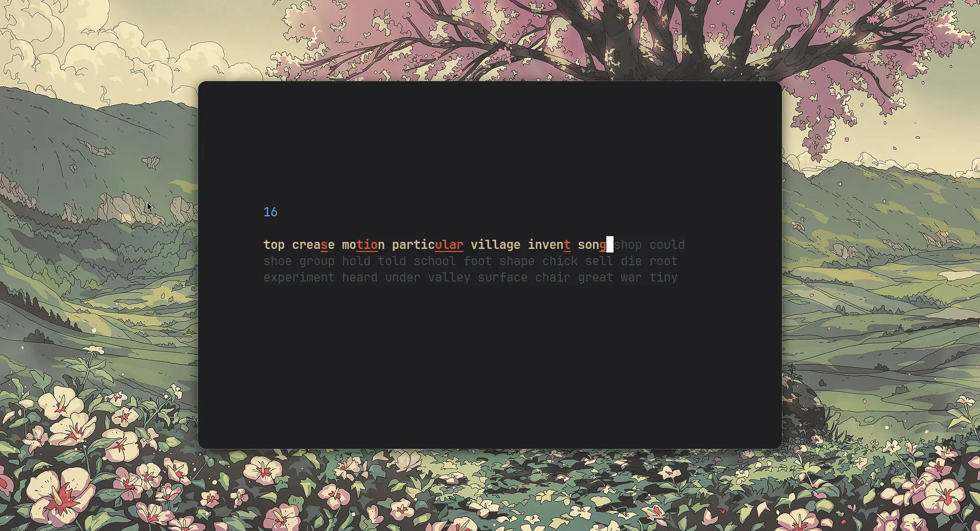 A minimal terminal-based typing test built with Go and Bubble Tea.